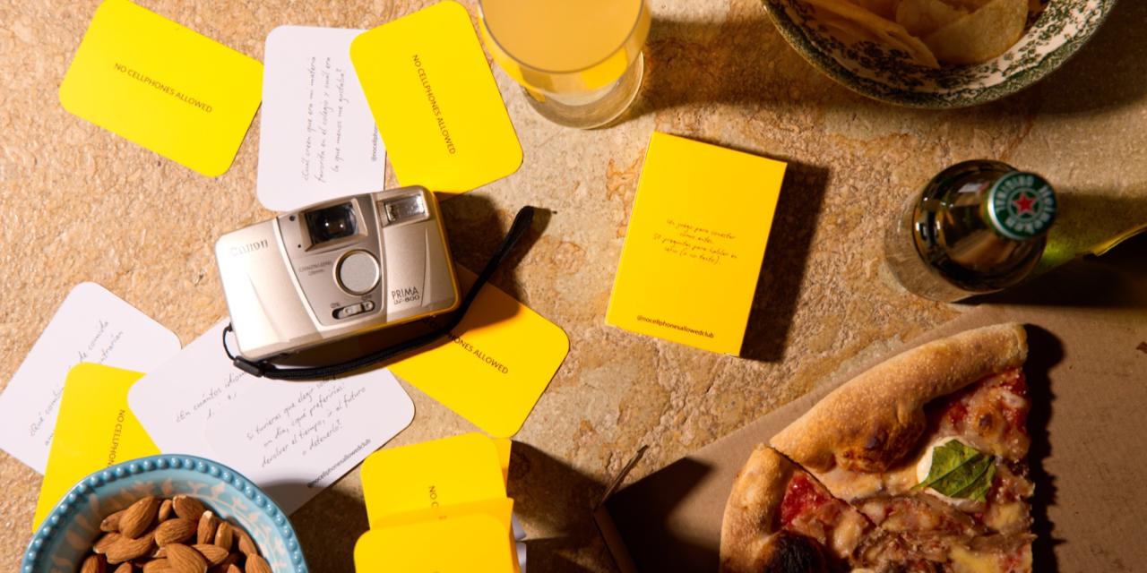 No Cellphones Allowed nace de la necesidad de volver a lo esencial: mirarnos a los ojos, conversar con calma y dejar el celular a un lado. Está diseñado para que las conversaciones fluyan sin esfuerzo, incluso cuando no hay tantos temas en común.